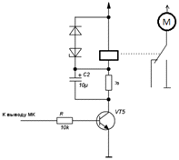 МИКРОКОНТРОЛЛЕР, НАГРУЗКА, ЭЛЕКТРОМАГНИТНОЕ РЕЛЕ, ДЕЛИТЕЛЬ НАПРЯЖЕНИЯ,