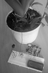 растением. В данную почву был вставлен датчик и подключен к измеряющей плате.