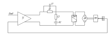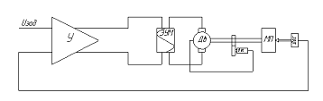 дополнительного звена - обратной связи охватывающей двигатель запишем следующее