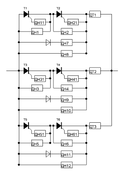 тиристоров. Были подобраны датчики напряжения и тока, обеспечивающие требуемый