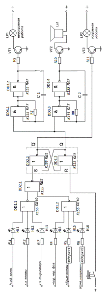 алгоритм работы световой и звуковой сигнализации неисправностей. Система подает