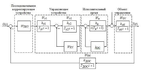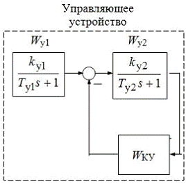 управляющего устройства, включающего в себя звенья с передаточными функциями Wy1 и Wу2.