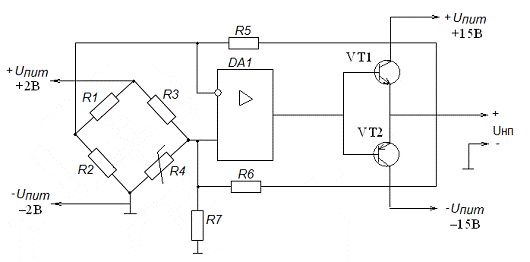 включается в неуравновешенный мост, являющийся частью нормирующего