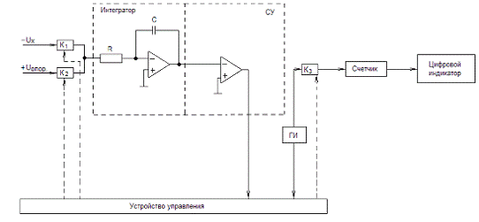 Напряжение Uнп или Uуст поступает в блок измерений, в