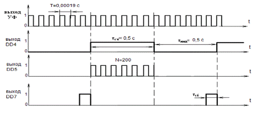 усиленные импульсы поступают на ключ в виде логического элемента «И» DD27. На второй вход ключа подаётся