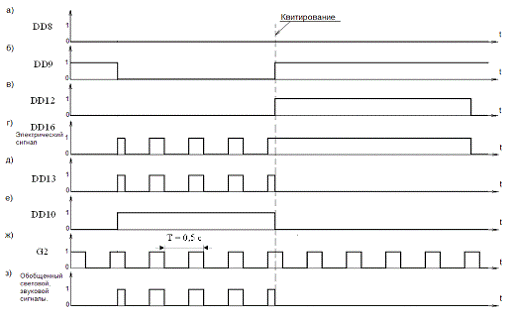 «квитирование», после нажатия которой звуковая сигнализация прекращается, а