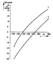 диапазона передачи оптических сигналов, в результате чего дисперсия становится