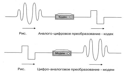 данных по аналоговым сетям через модем. Цифровые данные передаются
