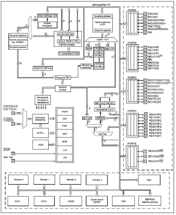 Микроконтроллеры PIC имеют симметричную систему команд, позволяющую выполнять
