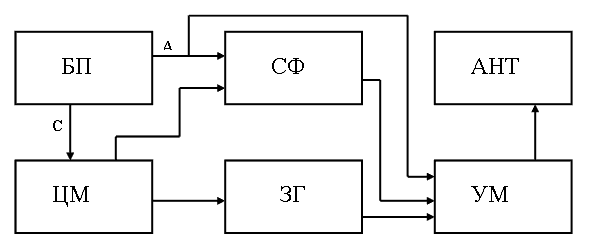 сигнал из выхода (1) ЦМ. СФ - формирует напряжение, управляемое ЦМ с допустимым
