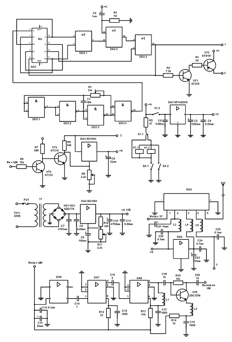 (1) «Vcc». Выходная мощность микросхемы 1мкВт. Далее сигнал усиливается двумя