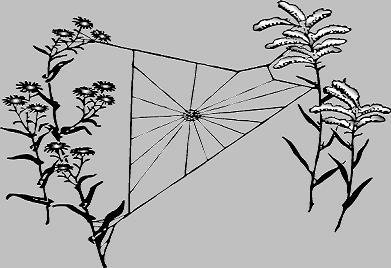 некоторые виды пауков строят горизонтальные сети. Между сторонами рамы натягиваются