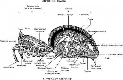 ВНУТРЕННЕЕ СТРОЕНИЕ ПАУКА.