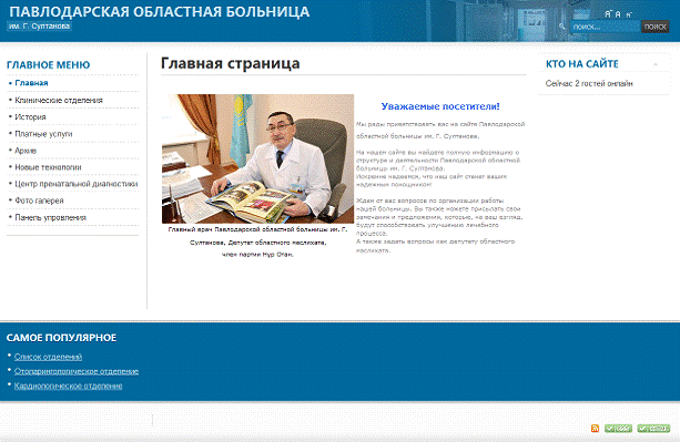 Web-сайт для Павлодарской областной больницы Г. Султанова