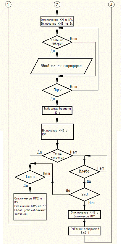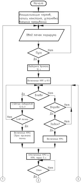 кнопка "Пуск". После отработки заданных в исходной точке маршрутов,