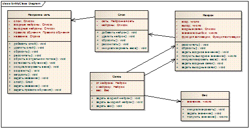 Рисунок 1.10 - Диаграмма сущностных классов структуры нейросети