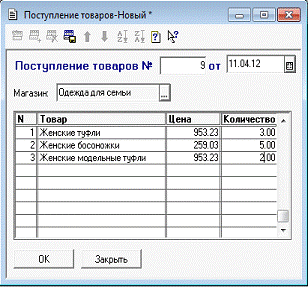 сохранения документа «Поступление товара» данные будут занесены в базу. Система