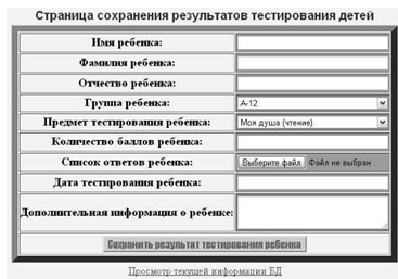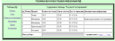 виде по каждому ребенку с результатами тестирования за определенный период.