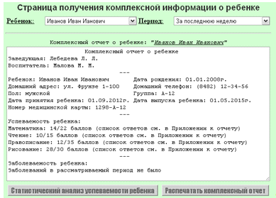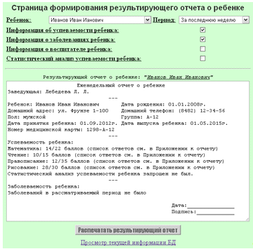 процесс формирования результирующего отчета по каждому ребенку, что позволяет