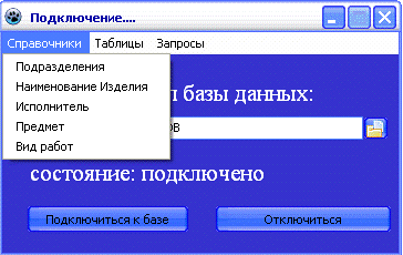 Следующая кнопка меню главной формы «Запросы» содержит два