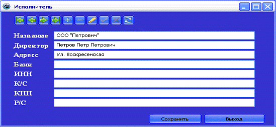 из выпадающего списка автоматически заполняются поля ИСПОЛНИТЕЛЬ,