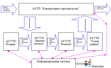 - АСУП “Конвертерное производство”, организующая координацию всех