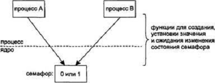 Довершают описание схемы работы двоичного семафора.
