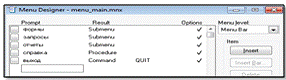. В поле Promptнеобходимо ввести наименования пунктов меню.