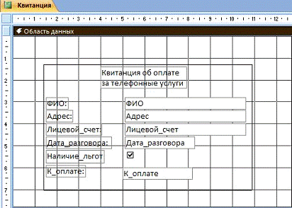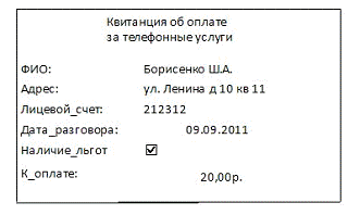 формирование отчета-квитанции об оплате услуги. Анализируя данную предметную
