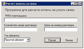 абонент), а также кнопку расчета вычислений с последующим выводом их на экран,