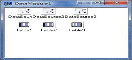 New | Data Module. Разместим на нем три компонента Table и DataSource, как показано на рисунке №8.