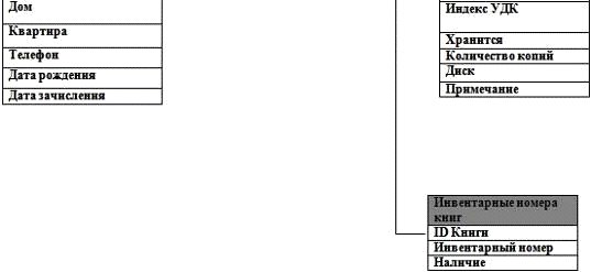 Таблица «Инвентарные номера книг» включают в себя поля:
