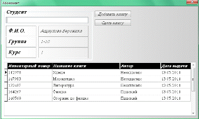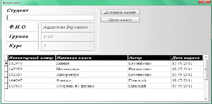 Программа была разработана с помощью Borland Delphi 7 и InterBase 6,5, служит для автоматизации процесса записи данных о выданных книгах.