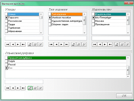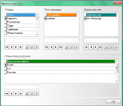 выбираемых полей показано на рисунке 20, улица, тип данных, издательство,