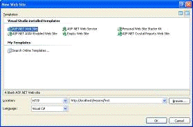 Откроем visual studio, выберем Create Web Site и шаблон ASP.NET Web Site. Выбираем место хранения файлов