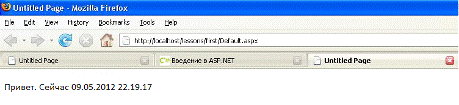 protected void Page_Load(object sender, EventArgs e) { Response.Write("Привет. сейчас " + DateTime.Now); }