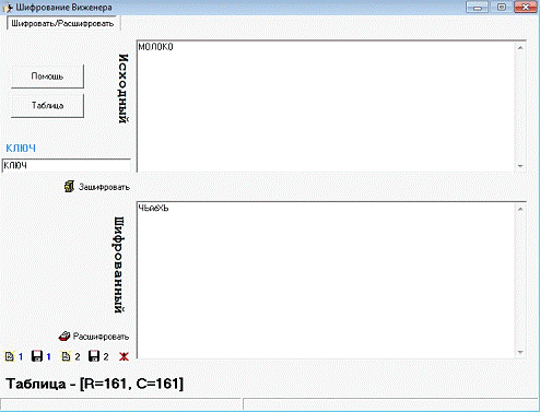 Виженера когда-то был не взламываемым. Эта версия использует в качестве ключа