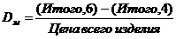 материалоемкости изделия - =(F9-D9)/2000