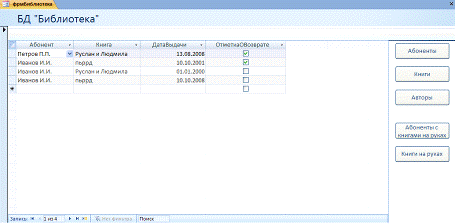 Рисунок 8. Главная форма БД «Библиотека»