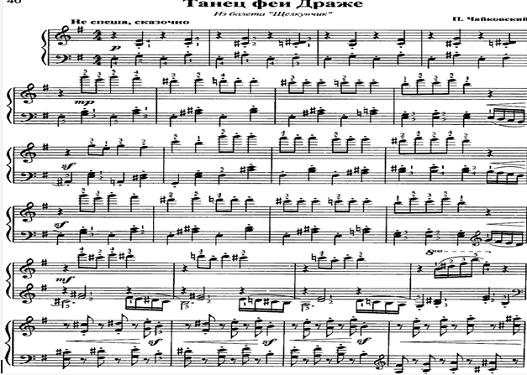 с произведением Петра Ильича Чайковского из балета «Щелкунчик». Нотный материал