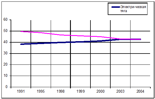 транспорта. Возросла доля железнодорожного транспорта (с 89,5% в 1950 до 41,8%