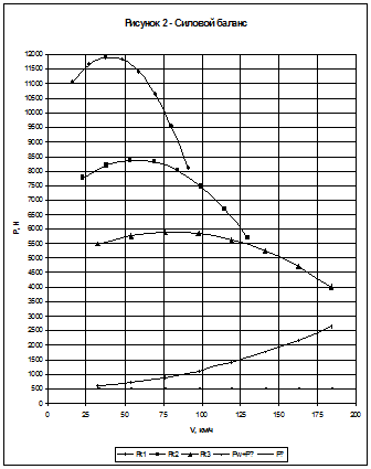 по ним строим график мощностного баланса автомобиля (рис. 9).