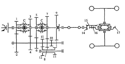 Рисунок 1.1 - Кинематическая схема трансмиссии трактора Т-150