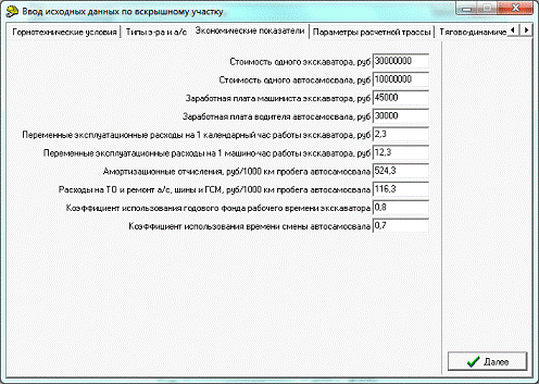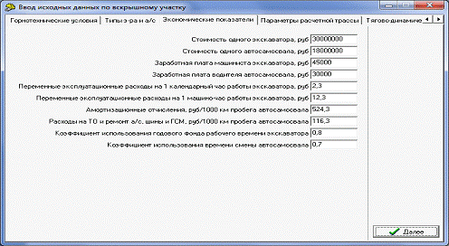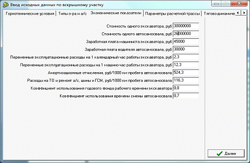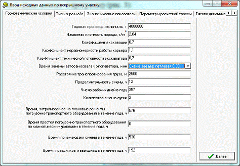 комплекса для заданных условий карьера”[1].
