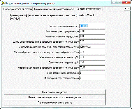 Расчет критериев эффективности эксплуатации комплекса ЭКГ-5А и БелАЗ-75570