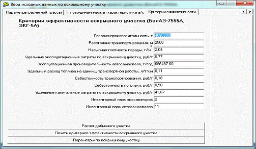Расчет критериев эффективности эксплуатации комплекса ЭКГ-5А и БелАЗ-7555А