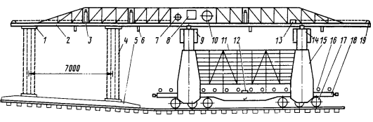 тележек 9, стрелы 12, опирающейся поперечными балками 16 и откидными балками 18