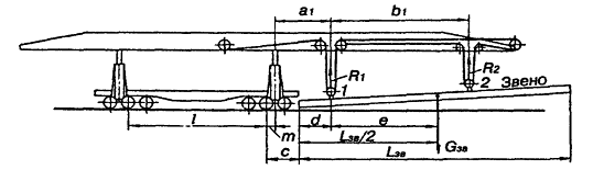 трёхосных тележках, у которых две крайние оси приводные. Укладочный кран служит