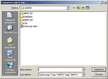 выбрать команду «Сохранить как…» пункта меню «Карта». При этом на экран будет