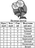 цвета (его яркость) - 1, а его отсутствие - 0, то получаем палитру